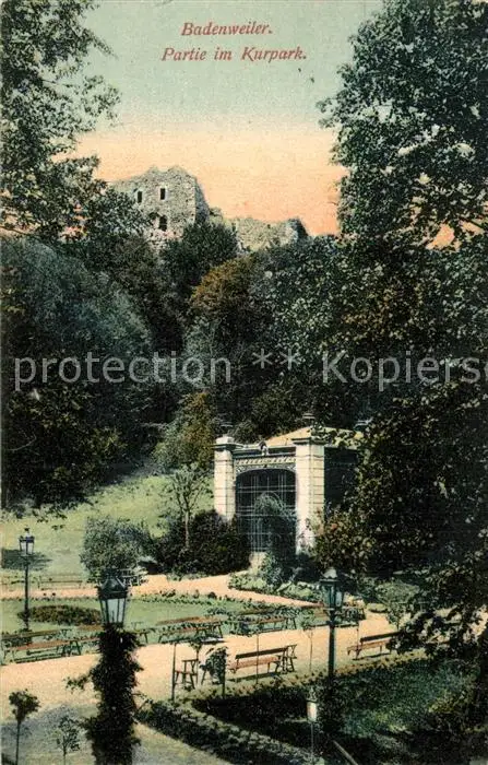 Badenweiler Partie im Kurpark Burgruine Kurort im Schwarzwald Badenweiler postalisch gelaufen bis 1920 Erhaltung siehe scans [FriedD77] Frierer
