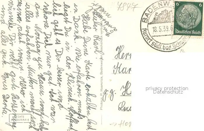 Badenweiler Pension Laengin mit Haus Burgblick Badenweiler postalisch gelaufen 1939 Erhaltung siehe scans [WerneD78] WernPID7