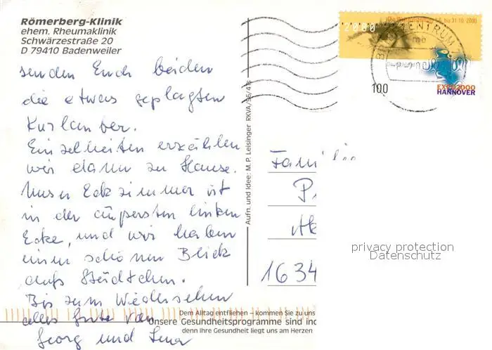 Badenweiler Roemerberg Klinik Kurort im Schwarzwald Badenweiler postalisch gelaufen 2000 Erhaltung siehe scans [FriedD77] Frierer