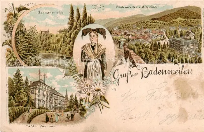 Badenweiler Schwanenteich Hotel-Sommer Badenweiler postalisch gelaufen 1898 Erhaltung siehe scans [LiesaD40] LiesID40