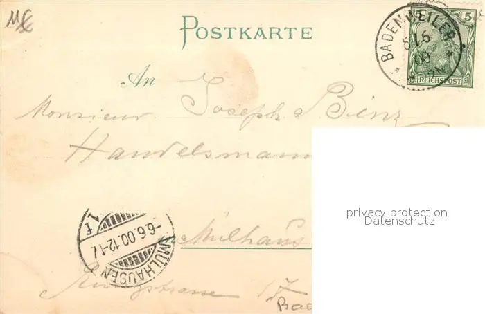 Badenweiler Stadtpanorama Kurort im Schwarzwald Badenweiler postalisch gelaufen 1900 Erhaltung siehe scans [FriedD77] Frierer