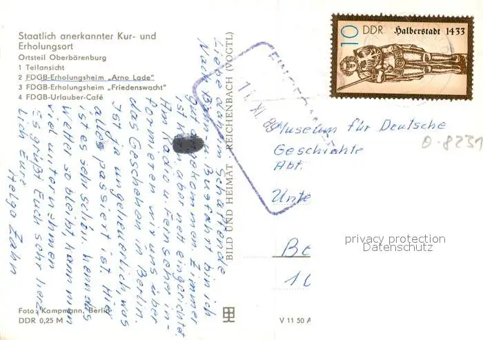 Baerenburg_Sachsen Teilansicht FDGB Erholungsheime Arno Lade und Friedenswacht FDGB Urlauber Cafe Baerenburg Sachsen postalisch gelaufen 1989 Erhaltung siehe scans [WerneD78] WernPID7