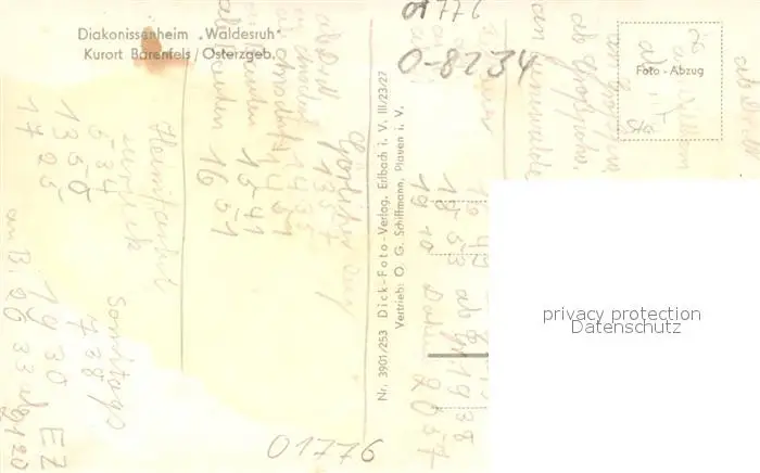 Baerenfels_Erzgebirge Diakonissenheim Waldesruh Baerenfels Erzgebirge postalisch nicht gelaufen 1921-1965 Erhaltung siehe scans [DarjaD83] DarjID83