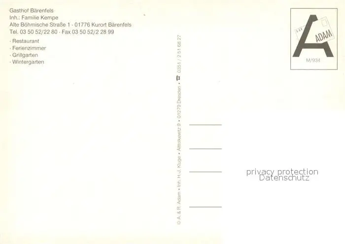 Baerenfels_Erzgebirge Gasthof Baerenfels Restaurant Ferienzimmer Grillgarten Wintergarten Baerenfels Erzgebirge postalisch nicht gelaufen nach 1965 Erhaltung siehe scans [WerneD78] WernPID7
