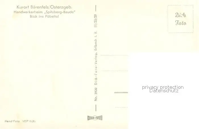 Baerenfels_Erzgebirge Handwerkerheim Spitzberg-Baude Blick ins Poebeltal Baerenfels Erzgebirge postalisch nicht gelaufen 1960 Erhaltung siehe scans [FriedD77] Frierer