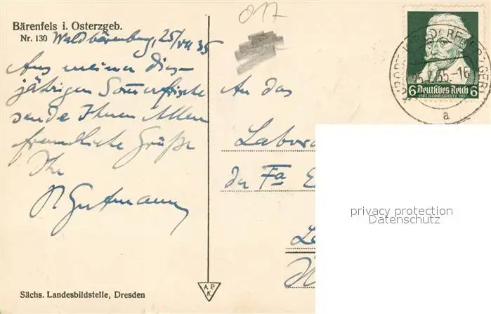 Baerenfels_Erzgebirge Teilansicht Baerenfels Erzgebirge postalisch gelaufen 1935 Erhaltung siehe scans [FriedD77] Frierer