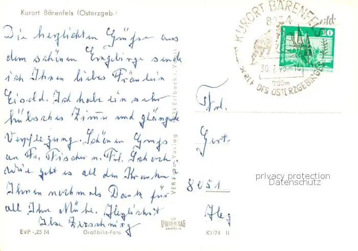 Baerenfels_Erzgebirge Teilansicht Baerenfels Erzgebirge postalisch gelaufen nach 1965 Erhaltung siehe scans [WerneD78] WernPID7
