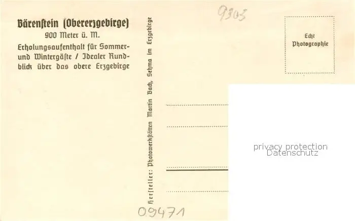 Baerenstein_Altenberg Unterkunftshaus Baerenstein_Altenberg postalisch nicht gelaufen 1921-1965 Erhaltung siehe scans [KathaD81] Kathoren