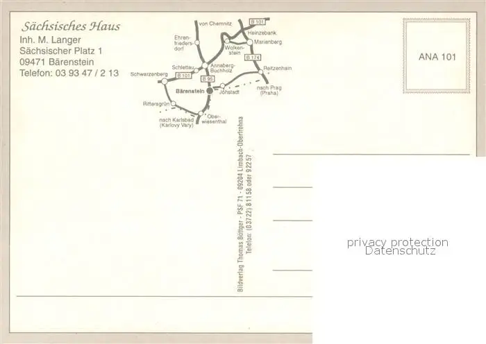 Baerenstein_Annaberg-Buchholz Hotel Restaurant Saechsisches Haus Baerenstein postalisch nicht gelaufen nach 1965 Erhaltung siehe scans [FriedD77] Frierer