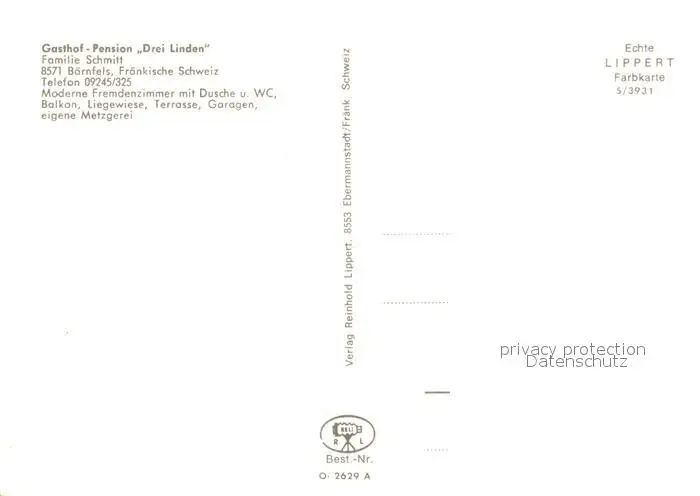 Baernfels Gasthof Pension Drei Linden See Landschaft Fraenkische Schweiz Felsen Baernfels postalisch nicht gelaufen nach 1965 Erhaltung siehe scans [FriedD77] Frierer