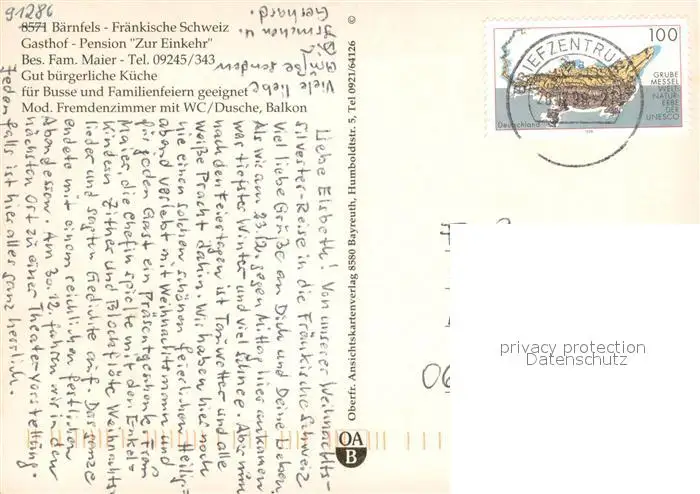 Baernfels Gasthof Pension Zur Einkehr Ponywagen Fraenkische Schweiz Baernfels postalisch gelaufen 1998 Erhaltung siehe scans [FriedD77] Frierer