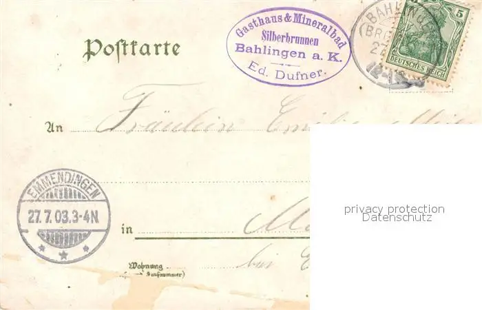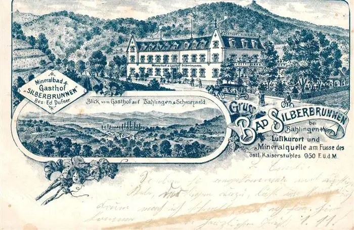 Bahlingen Kategorie Alte Ansichtskarten Postkarten bx56568 Bahlingen Bad Silberbrunnen Bahlingen postalisch gelaufen 1903 Erhaltung siehe scans [NatalD47]