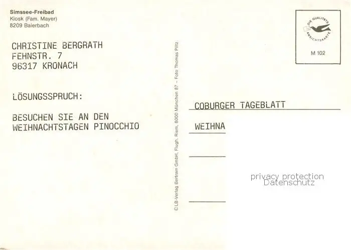 Baierbach_Niederbayern Simssee Freibad Kiosk Liegewiese Baierbach Niederbayern postalisch nicht gelaufen nach 1965 Erhaltung siehe scans [FriedD77] Frierer