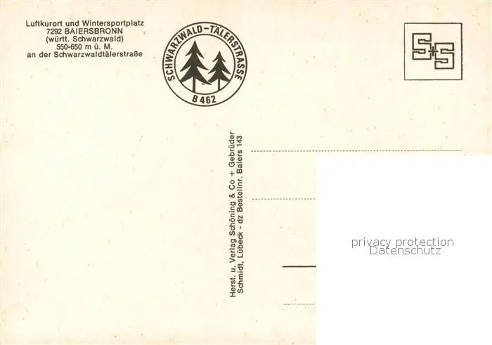 Baiersbronn Schwarzwald Kategorie Alte Ansichtskarten Postkarten bx58505 Baiersbronn_Schwarzwald Baiersbronn Schwarzwald postalisch nicht gelaufen nach 1965 Erhaltung siehe scans [NatalD47]