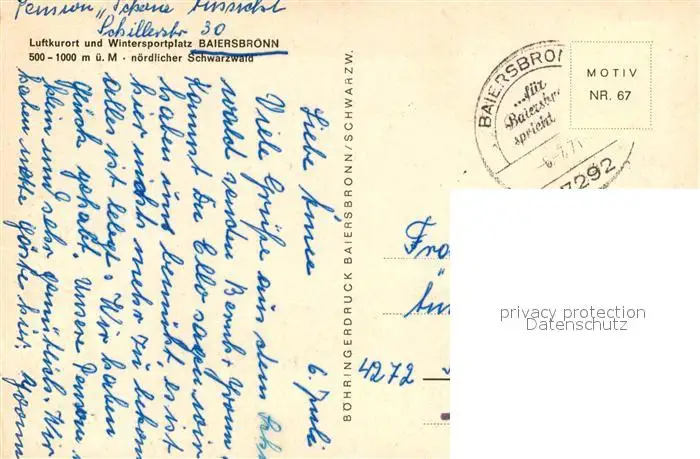 Baiersbronn_Schwarzwald Baiersbronn Schwarzwald postalisch gelaufen 1971 Erhaltung siehe scans [NatalD47] NataID47