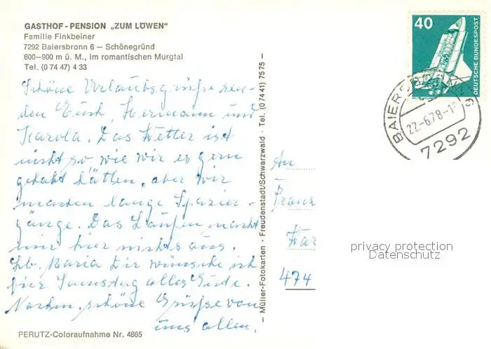 Baiersbronn_Schwarzwald Gasthof Pension Zum Loewen Gaststube Baiersbronn Schwarzwald postalisch gelaufen 1978 Erhaltung siehe scans [WerneD78] WernPID7