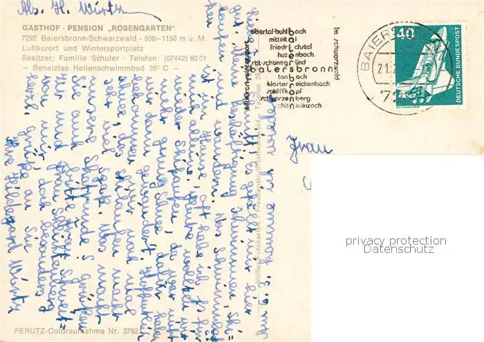 Baiersbronn_Schwarzwald Gasthof Rosengarten Baiersbronn Schwarzwald postalisch gelaufen 1976 Erhaltung siehe scans [WerneD78] WernPID7