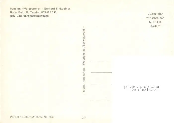 Baiersbronn_Schwarzwald Pension Waldesruhe Baiersbronn Schwarzwald postalisch nicht gelaufen nach 1965 Erhaltung siehe scans [WerneD78] WernPID7