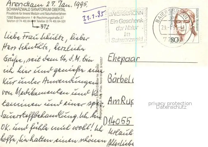 Baiersbronn_Schwarzwald Schwarzwaldsanatorium Obertal Fliegeraufnahme Baiersbronn Schwarzwald postalisch gelaufen 1995 Erhaltung siehe scans [WerneD78] WernPID7