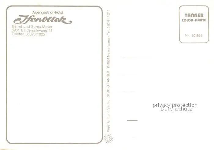 Balderschwang Alpengasthof Hotel Ifenblick Balderschwang postalisch nicht gelaufen nach 1965 Erhaltung siehe scans [FriedD77] Frierer