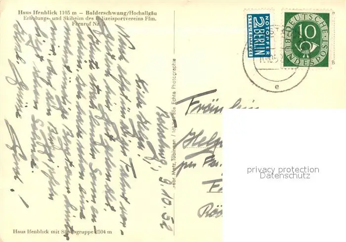Balderschwang Haus Ifenblick Erholungsheim Skiheim Polizeisportverein Frankfurt Alpenpanorama Balderschwang postalisch gelaufen 1952 Erhaltung siehe scans [FriedD77] Frierer
