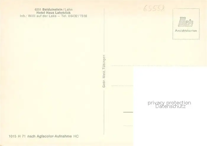 Balduinstein Hotel Haus Lahnblick Balduinstein postalisch nicht gelaufen nach 1965 Erhaltung siehe scans [WerneD78] WernPID7
