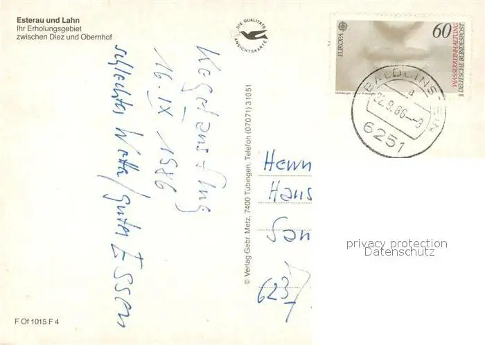 Balduinstein Laurenburg Ruine Holzappel Balduinstein postalisch gelaufen 1986 Erhaltung siehe scans [KathaD81] Kathoren