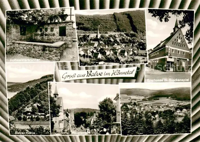 AK / Ansichtskarte Balve Hoffmeisterbrunnen Sparkasse Balver Hoehle Hauptstrasse Panorama Balve