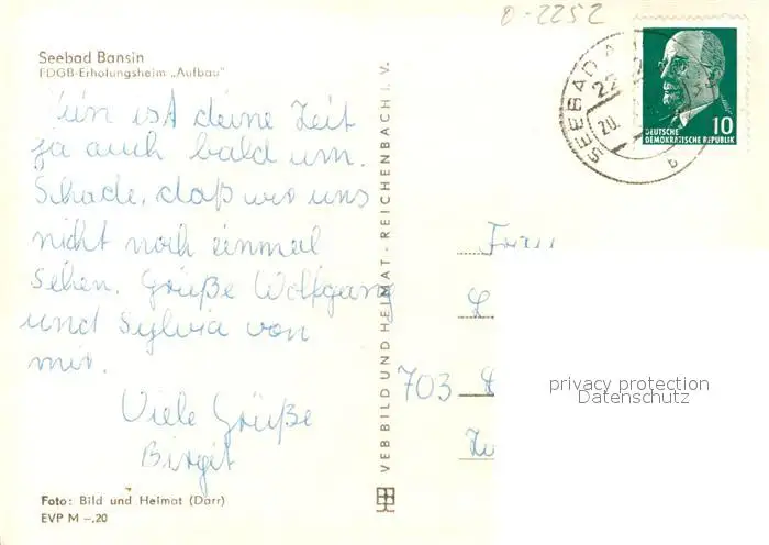 Bansin_Ostseebad FDGB Erholungsheim Aufbau Bansin_Ostseebad postalisch gelaufen 1973 Erhaltung siehe scans [FriedD77] Frierer