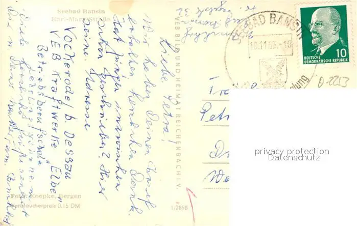 Bansin_Ostseebad Karl Marx Strasse Bansin_Ostseebad postalisch gelaufen 1963 Erhaltung siehe scans [LiesaD40] LiesID40