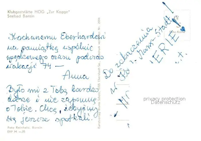 Bansin_Ostseebad Klubgaststaette HOG Zur Kogge Bansin_Ostseebad postalisch nicht gelaufen 1972 Erhaltung siehe scans [FriedD77] Frierer
