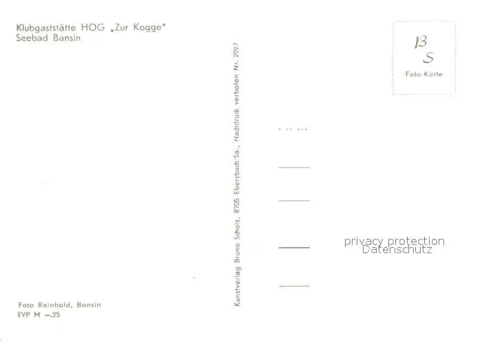 Bansin_Ostseebad Klubgaststaette HOG Zur Kogge Bansin_Ostseebad postalisch nicht gelaufen 1972 Erhaltung siehe scans [FriedD77] Frierer