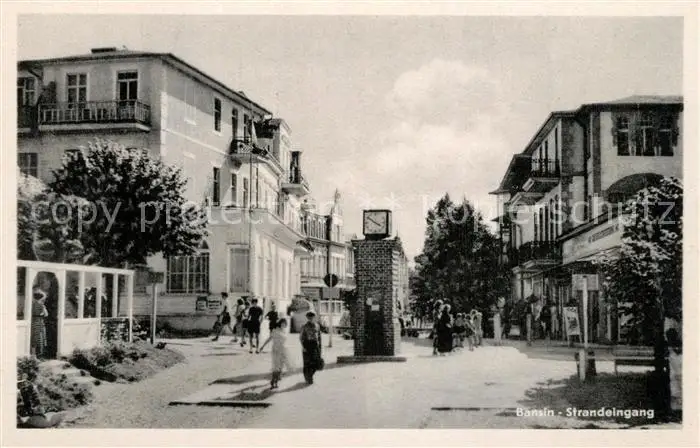 AK / Ansichtskarte Bansin_Ostseebad Strandeingang Standuhr Bansin_Ostseebad