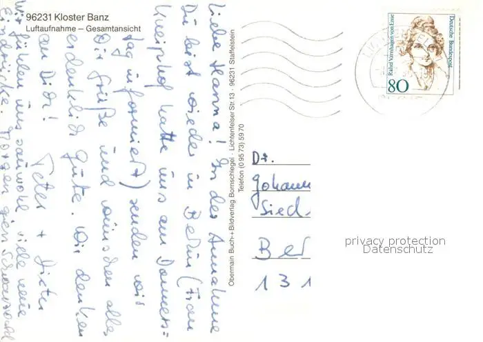 Banz_Bad_Staffelstein Kloster Banz Fliegeraufnahme Banz_Bad_Staffelstein postalisch gelaufen nach 1965 Erhaltung siehe scans [WerneD78] WernPID7