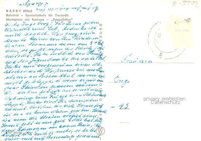 Barby_Elbe Bahnhof Spezialschule Tierzucht Marktplatz Rathaus Prinzesschen Barby_Elbe postalisch gelaufen nach 1965 Erhaltung siehe scans [KathaD81] Kathoren