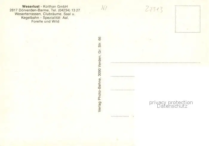 Barme_Verden Weserlust Gasthaus Gastraeume Terrasse Barme Verden postalisch nicht gelaufen nach 1965 Erhaltung siehe scans [WerneD78] WernPID7
