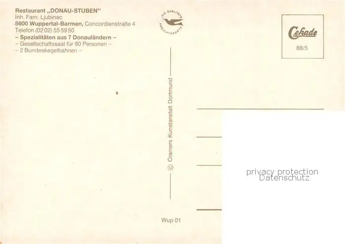 Barmen_Wuppertal Restaurant Donau-Stuben Barmen Wuppertal postalisch nicht gelaufen 1988 Erhaltung siehe scans [FriedD77] Frierer