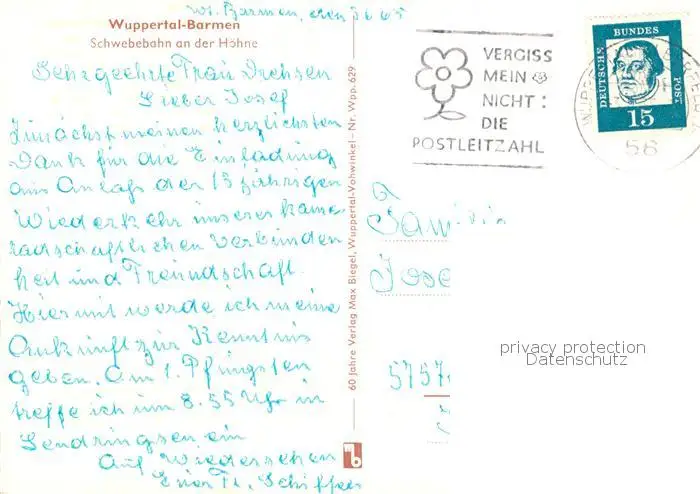 Barmen_Wuppertal Schwebebahn an der Hoehne Barmen Wuppertal postalisch gelaufen 1965 Erhaltung siehe scans [FriedD77] Frierer