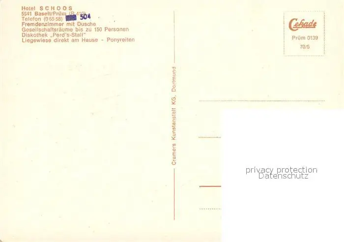 Baselt Hotel Schoos Restaurant Café Pferdekoppel Baselt postalisch nicht gelaufen 1970 Erhaltung siehe scans [FriedD77] Frierer