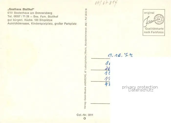 Bastenhaus Gasthaus Stollhof Gastraum Aussichtsturm Sender bastenhaus postalisch nicht gelaufen 1981 Erhaltung siehe scans [FriedD77] Frierer