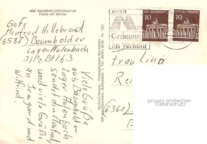 Baumholder Nahe Kategorie Alte Ansichtskarten Postkarten bx55604 Baumholder_Nahe Baumholder Nahe postalisch gelaufen nach 1965 Erhaltung siehe scans [NatalD47]