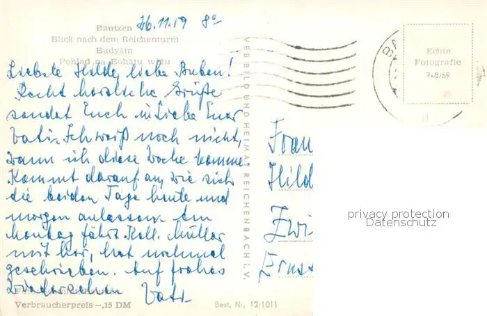 Bautzen Blick zum Reichenturm Bautzen postalisch gelaufen 1959 Erhaltung siehe scans [FriedD77] Frierer