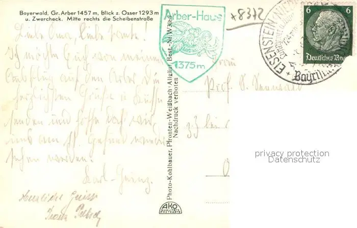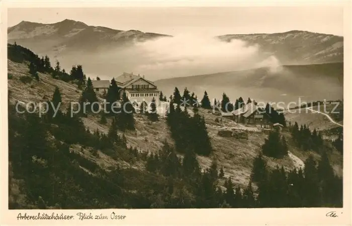 Bayerisch_Eisenstein Arberschutzhaeuser Blick zum Osser Bayerischer Wald Bayerisch_Eisenstein postalisch gelaufen 1938 Erhaltung siehe scans [FriedD77] Frierer