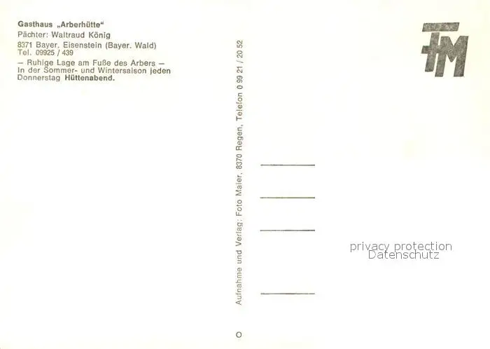 Bayerisch_Eisenstein Gasthaus Arberhuette Gaststube Bayerisch_Eisenstein postalisch nicht gelaufen nach 1965 Erhaltung siehe scans [WerneD78] WernPID7