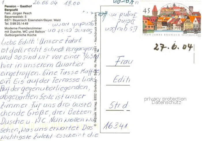 Bayerisch_Eisenstein Pension Gasthof Bergcafe Bayerisch_Eisenstein postalisch gelaufen 2004 Erhaltung siehe scans [WerneD78] WernPID7