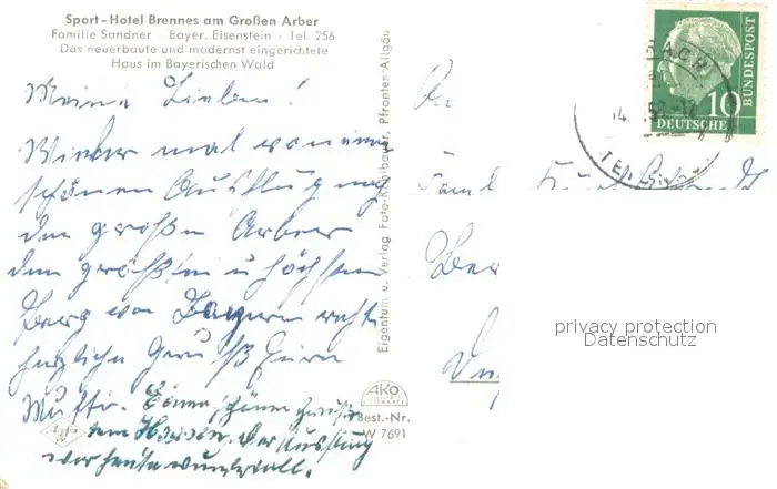 Bayerisch_Eisenstein Sporthotel Brennes Schwebebahn Geigenbachfall Arbergipfel Gr Arber Gr Arbersee Bayerisch_Eisenstein postalisch gelaufen 1958 Erhaltung siehe scans [WerneD78] WernPID7