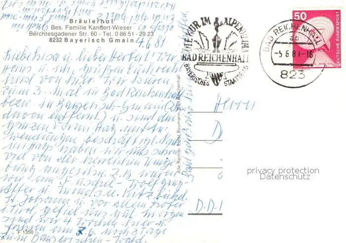 Bayerisch_Gmain Braeulerhof Bayerisch Gmain postalisch gelaufen 1981 Erhaltung siehe scans [FriedD77] Frierer