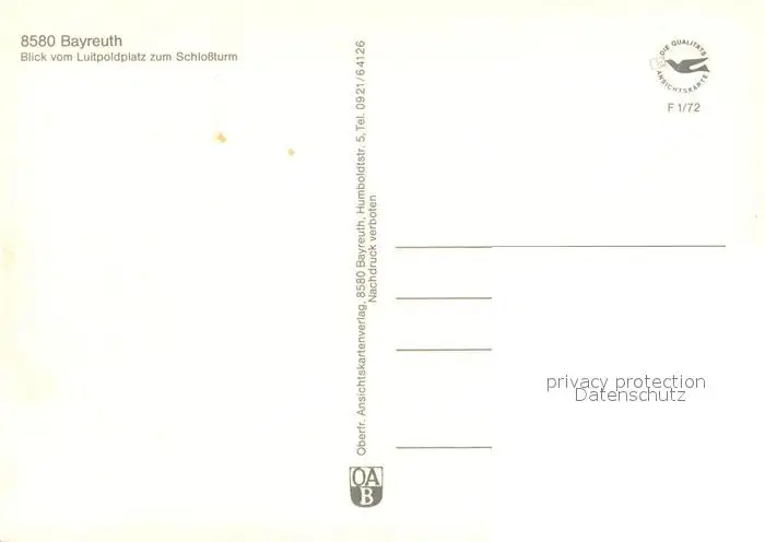 Bayreuth Blick vom Luitpoldplatz zum Schlossturm Brunnen Bayreuth postalisch nicht gelaufen 1972 Erhaltung siehe scans [FriedD77] Frierer