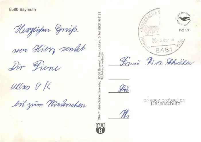 Bayreuth Fliegeraufnahme Brunnen Ortspartien Bayreuth postalisch gelaufen 1985 Erhaltung siehe scans [LiesaD40] LiesID40
