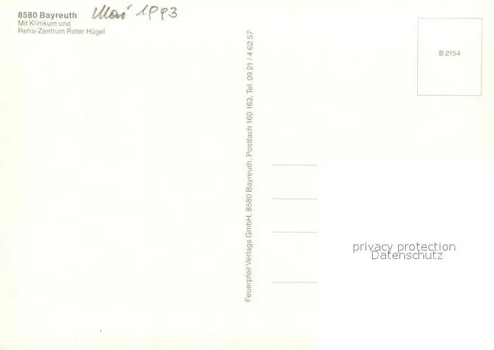 Bayreuth Klinikum und Reha Zentrum Roter Huegel Fliegeraufnahme Bayreuth postalisch nicht gelaufen 1993 Erhaltung siehe scans [WerneD78] WernPID7
